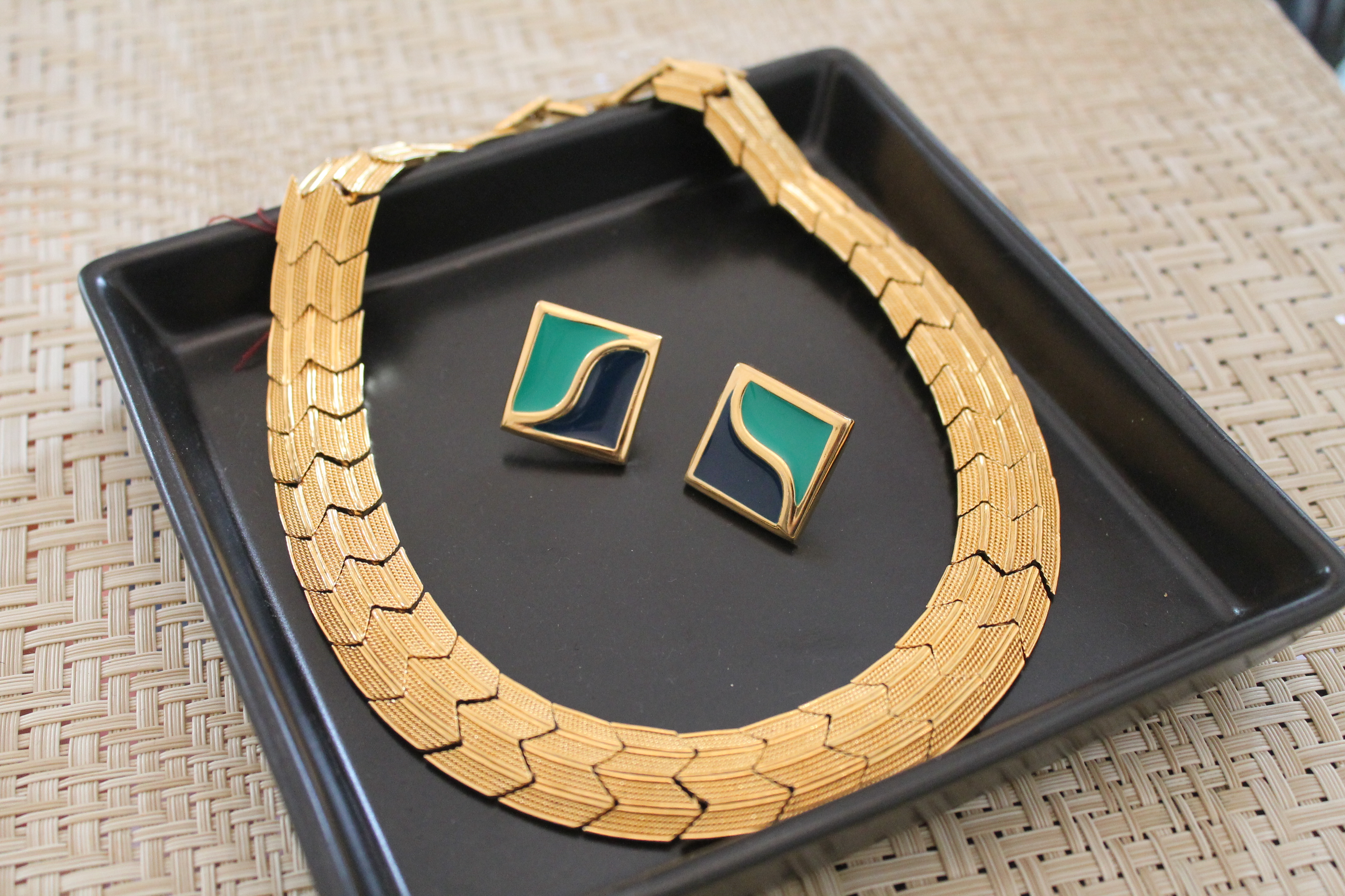 Statement necklaces are perfect for the office or a fun adventure and they go perfect with these colorful earrings.