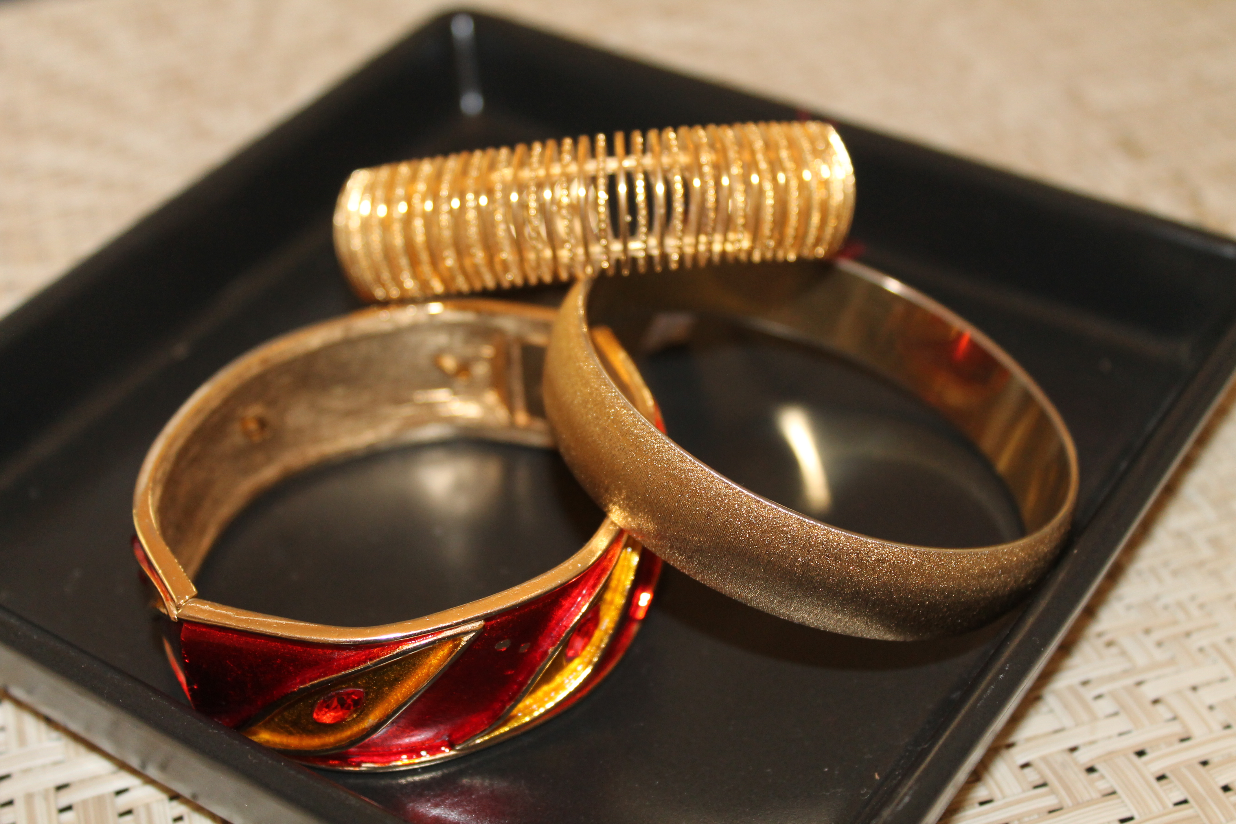 Jillian: Pick one statement piece and highlight by layering with daintier pieces or your simple everyday classics. Gold bangles, link bracelets and gold chains of all widths are staples that make layering effortless. I’m a fan of picking one poison at a time, whether that be statement earrings and your hair up, an arm candy party of bracelets or an oversized, sparkly rhinestone necklace.