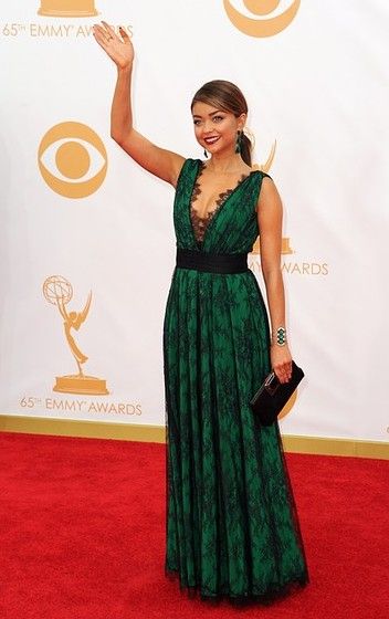 Sarah Hyland in CH Carolina Herrera: Going green pays off! She looks like a movie star and it’s also age appropriate, considering she is in her early 20s. The belt gives it a nice cinching and contrast, and lace is a perfect fall material.